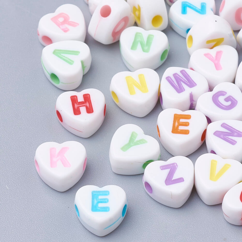 Cuentas acrílicas, Corazon con alfabeto, Letras Negra